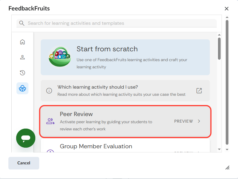 Selecteer Start from scratch en selecteer Peer Review.